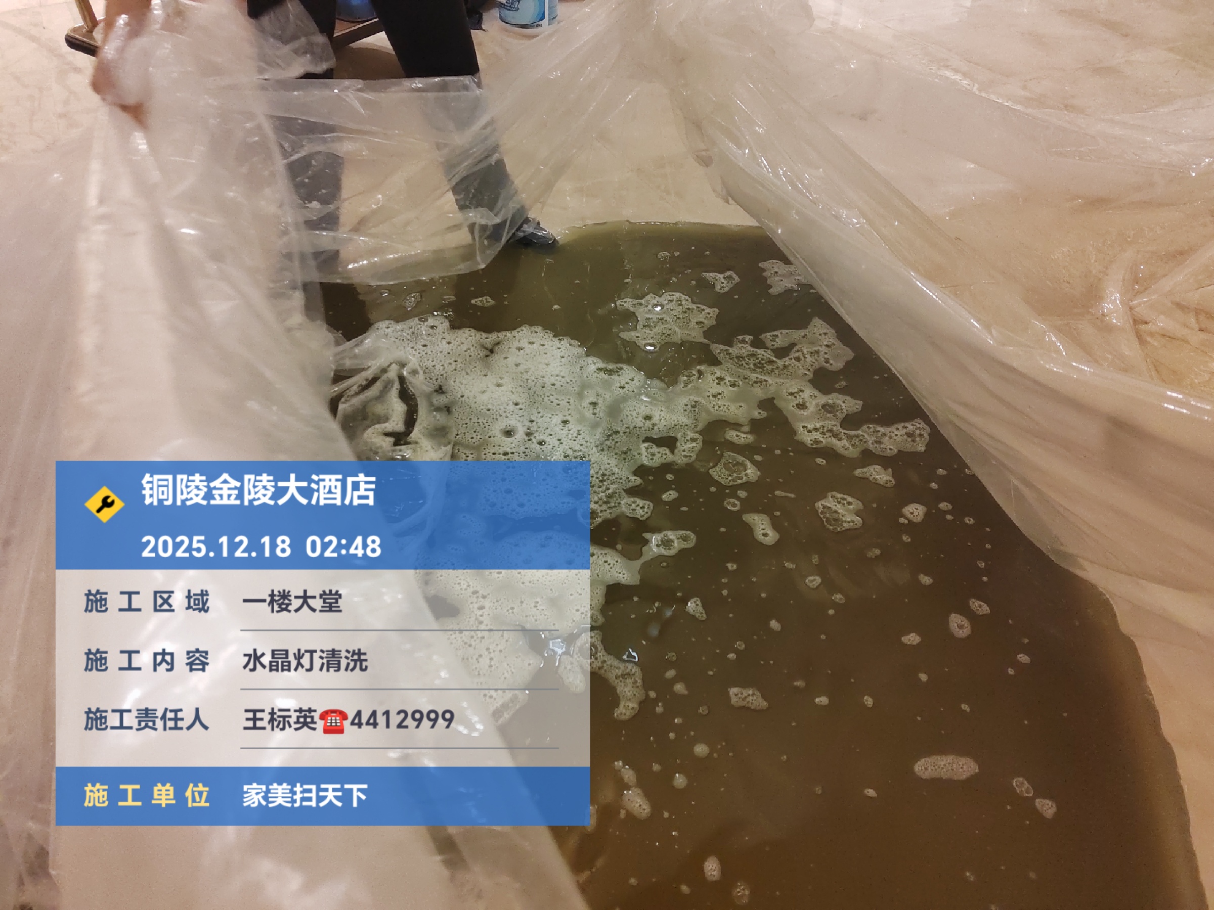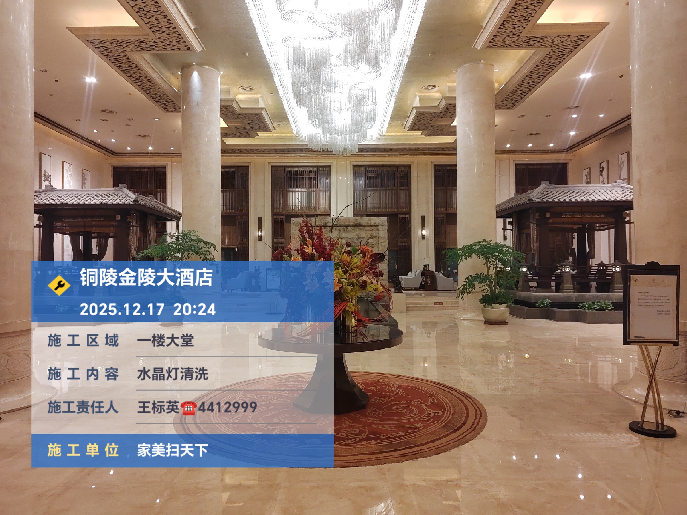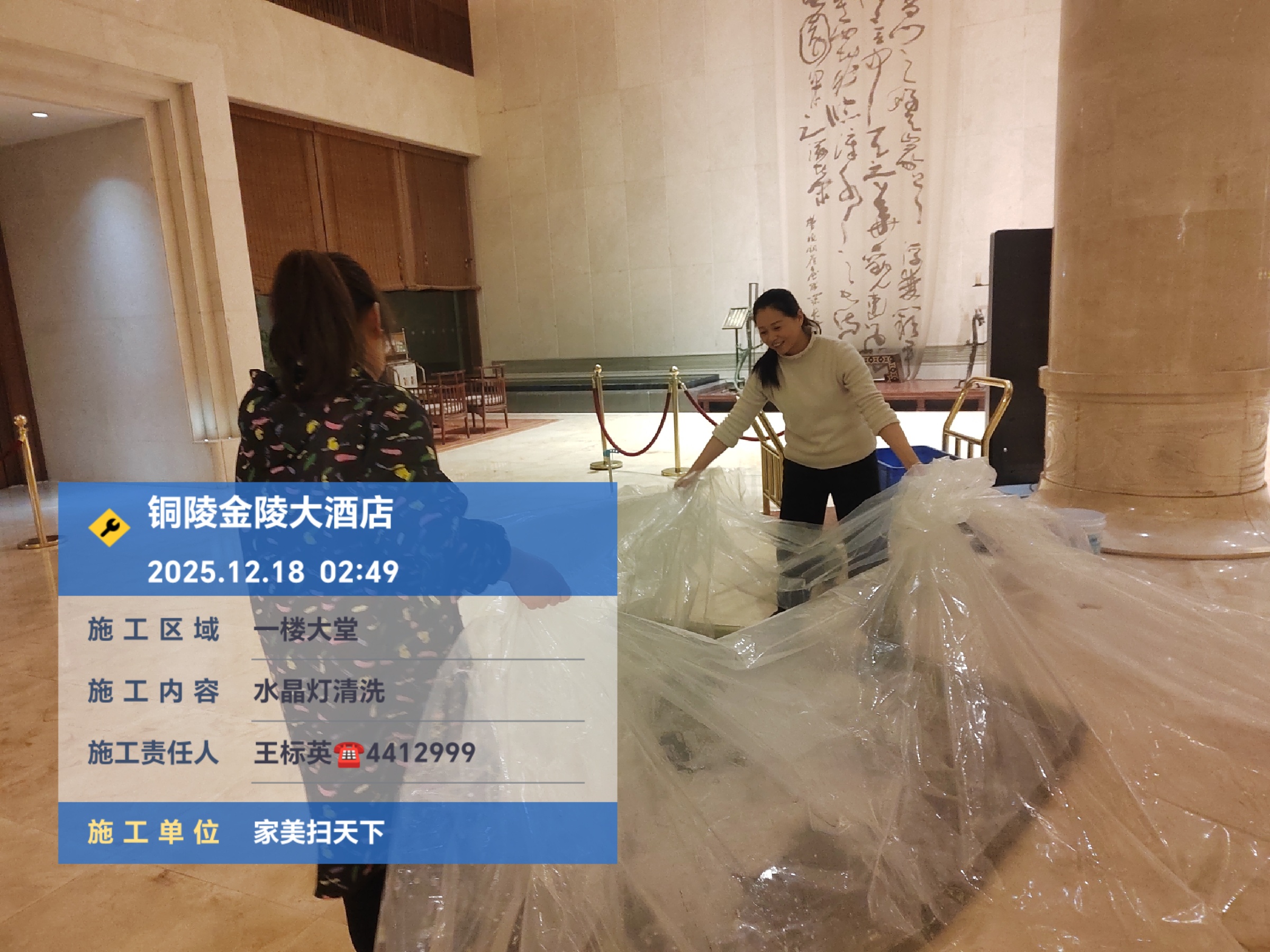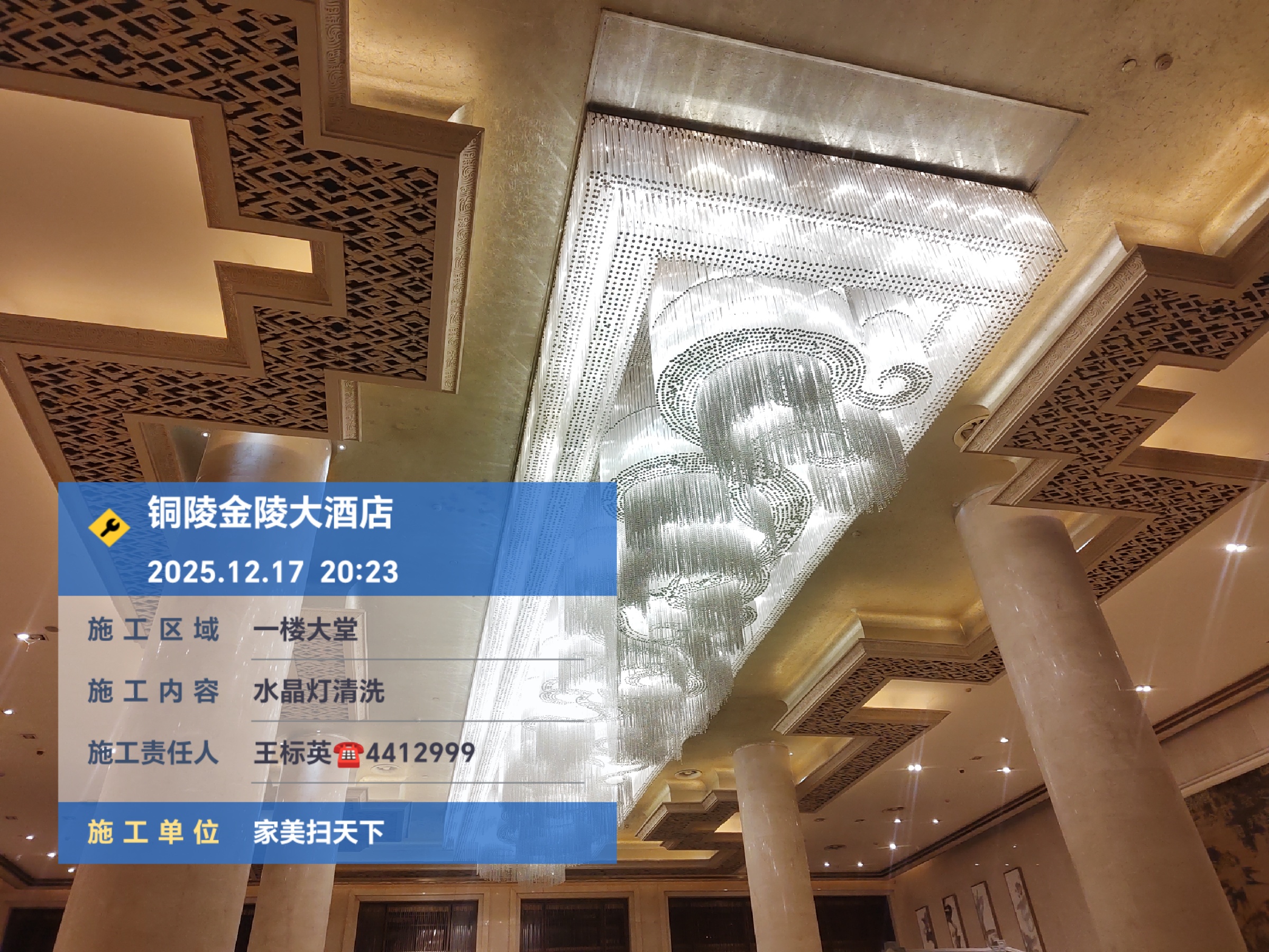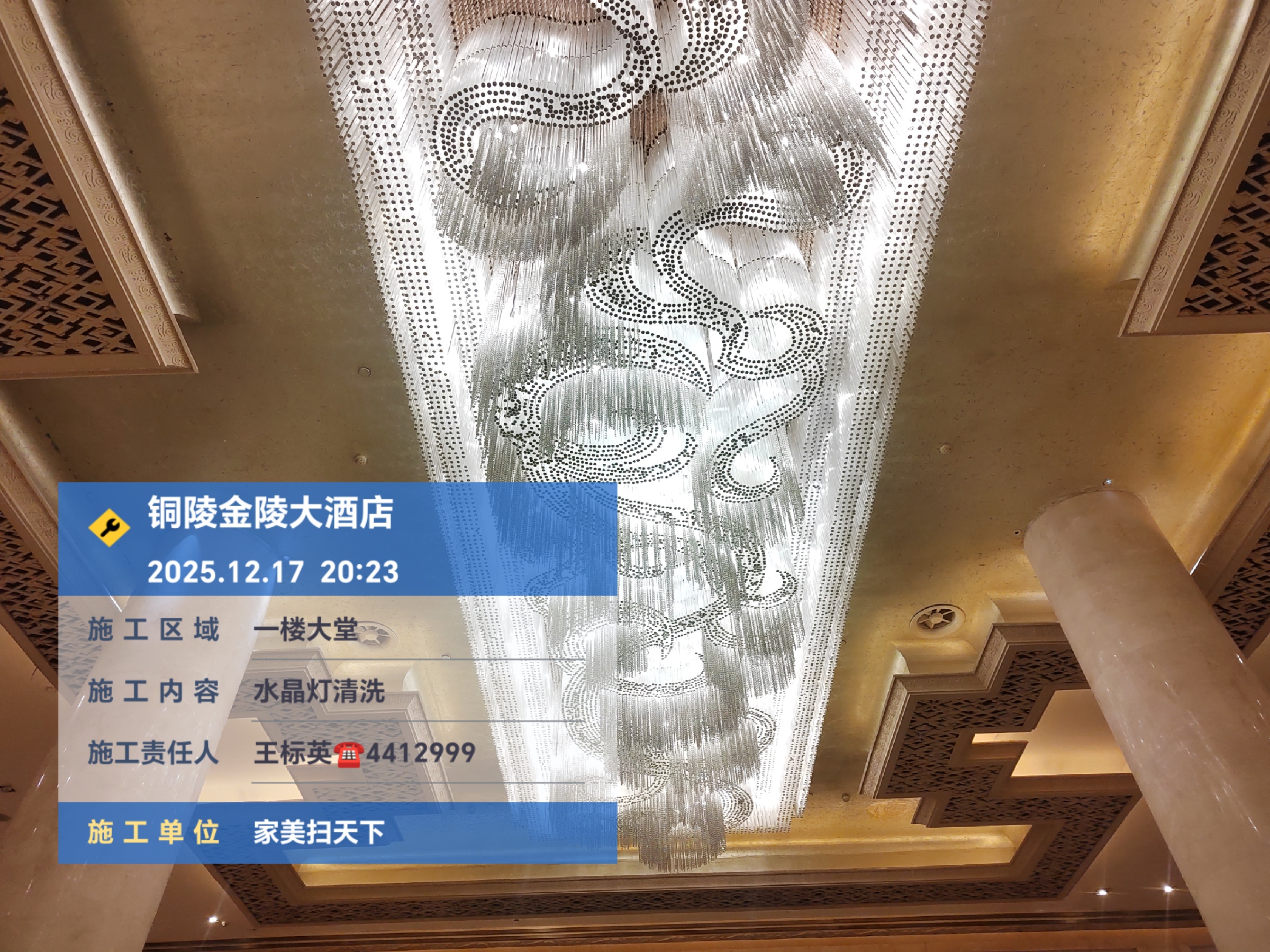 2025.12.18在安徽铜陵金陵五星酒店大堂水晶灯清洗采用免拆洗技术
